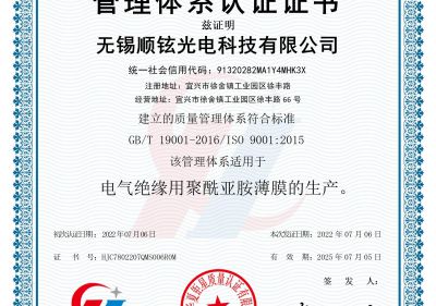 無錫順鉉光電質(zhì)量管理體系認(rèn)證證書(Q)